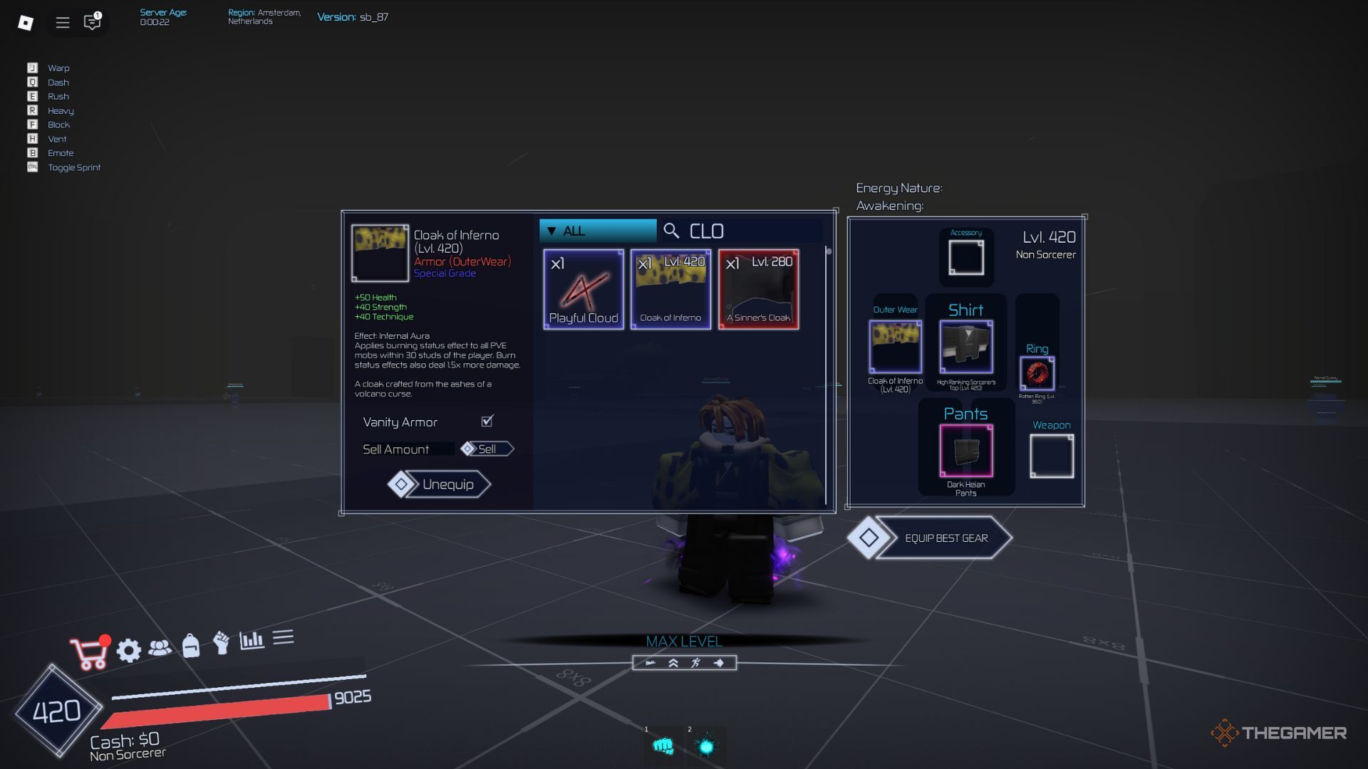 Плащ Инферно служит мощной броней в игре Roblox Jujutsu Infinite. Этот исключительный артефакт улучшает как вашу боевую технику, так и общую боевую эффективность. Классифицируется как предмет особого уровня, и его приобретение исключительно сложно: доступ предоставляется только после того, как вы превысите 240-й уровень, что является серьезным препятствием для новичков.