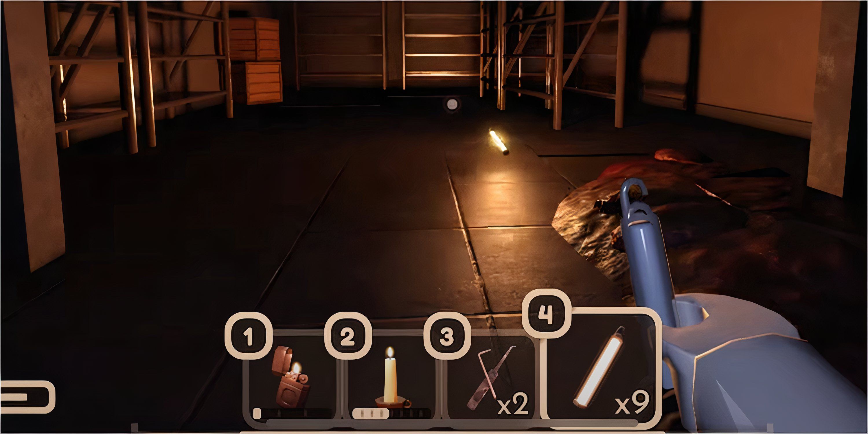 В плане осветительных средств обычный фонарик предлагает оптимальный баланс функциональности и экономии ресурсов. Он значительно ярче, более целенаправленный и имеет большее время работы от батареи по сравнению с зажигалкой. Этот баланс между интенсивностью света и эффективностью позволяет игрокам перемещаться в темных пространствах, читать номера дверей и оставаться бдительными перед такими ловушками как силки, при этом эффективно экономя ресурсы.