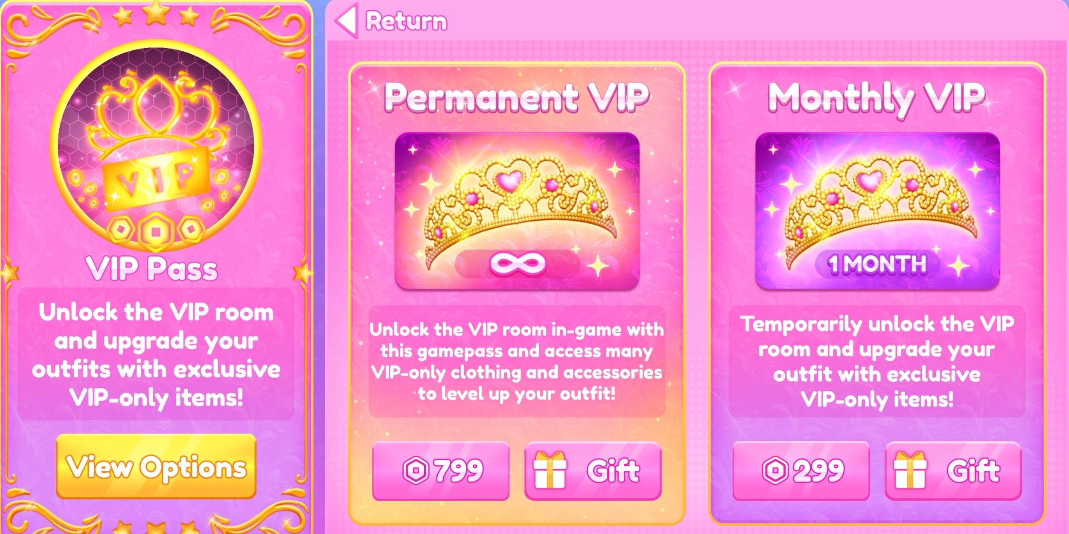 VIP-членство обеспечивает премиум-положение благодаря множеству функций, несмотря на высокую стоимость. Этот эксклюзивный доступ предоставляет игрокам уникальную комнату с разнообразными модными вариантами одежды, позволяя совершенствовать внешний вид персонажей до невероятных уровней. С каждым обновлением или введением новой темы также становятся доступными VIP-эксклюзивные предметы для использования.
