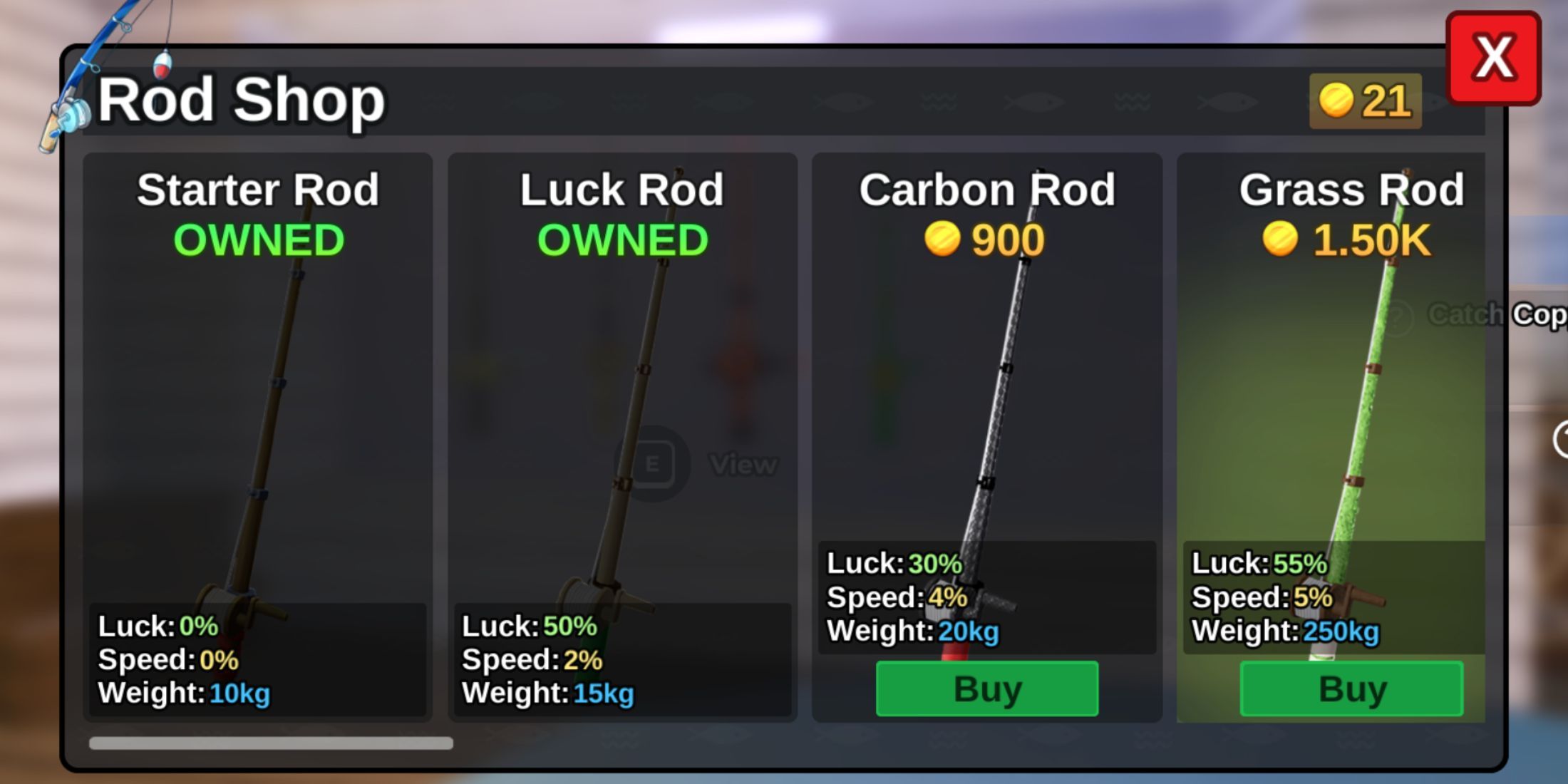 Начиная свое рыболовное приключение в Fish It, вы изначально будете владеть только базовой Стартовой Удочкой. Учитывая, что она обладает наименее впечатляющими характеристиками среди всех удочек, рекомендуется быстро ее заменить. К счастью, многие удочки в этой игре можно приобрести у торговцев за внутриигровую валюту. Однако помните, что чем более впечатляющие характеристики, тем выше цена. Что касается удочек в Fish It, каждая из них имеет числовые атрибуты, влияющие на ваш улов.